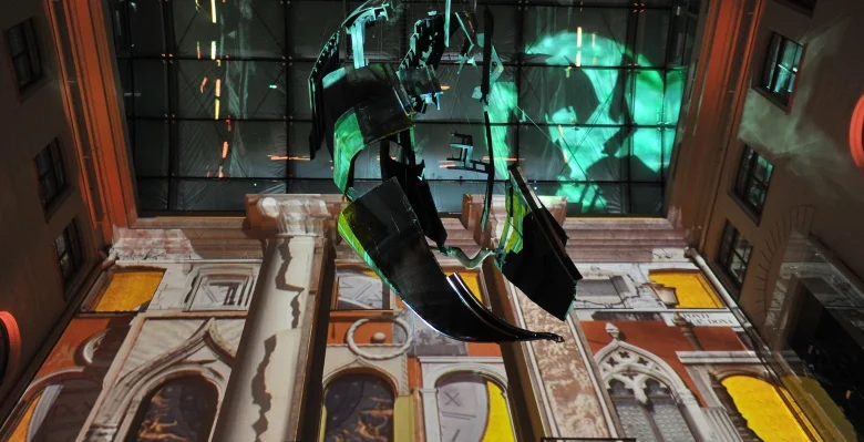 Later, we happened upon a free multimedia exhibit at Art Museum Riga Bourse called Gondola: Doors to Venice. Set to Vivaldi's Nisi Dominis (made famous in Guy Ritchie's film Revolver) the performance was held in the courtyard of the art museum under its famous installation called Gondola, a three dimensional air borne 'explosion' of a real gondola. A local favorite, citizens of Riga frequently make plans to meet friends under the gondola.